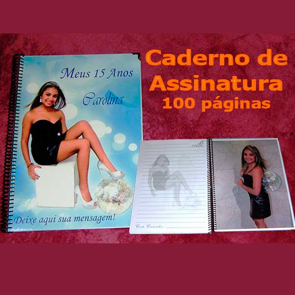 Caderno de Assinatura com sua foto ou texto desejado de sua festa, evento ou curso, feito para o CL, 15 ANOS