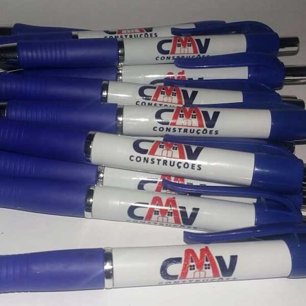 Caneta personalizada com a logo ou texto desejado de sua empresa ou negócio, feita para o cliente CMV CONSTRUÇÕES