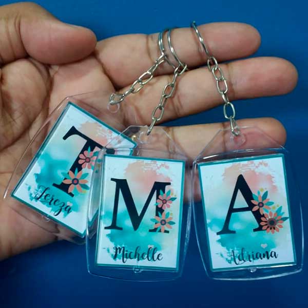 Chaveiro de acrílico personalizado com as iniciais do nome (alfabeto completo)