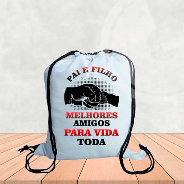 Mochilinha Personalizada para o Dia dos Pais ( Largura 30cm | Altura 40cm ). Feito com tecido 100% Poliester/Orford e cordão Poliester. Personalizamos no Tema que Desejar….