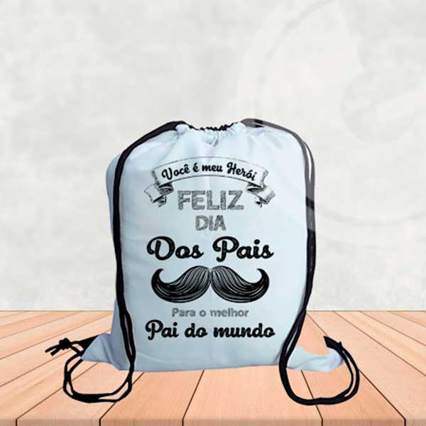 Mochilinha personalizado especialmente para o Dia dos Pais. feita em em tecido 100% poliéster/Oxford e com cordão preto no tamanho de 30x40cm
